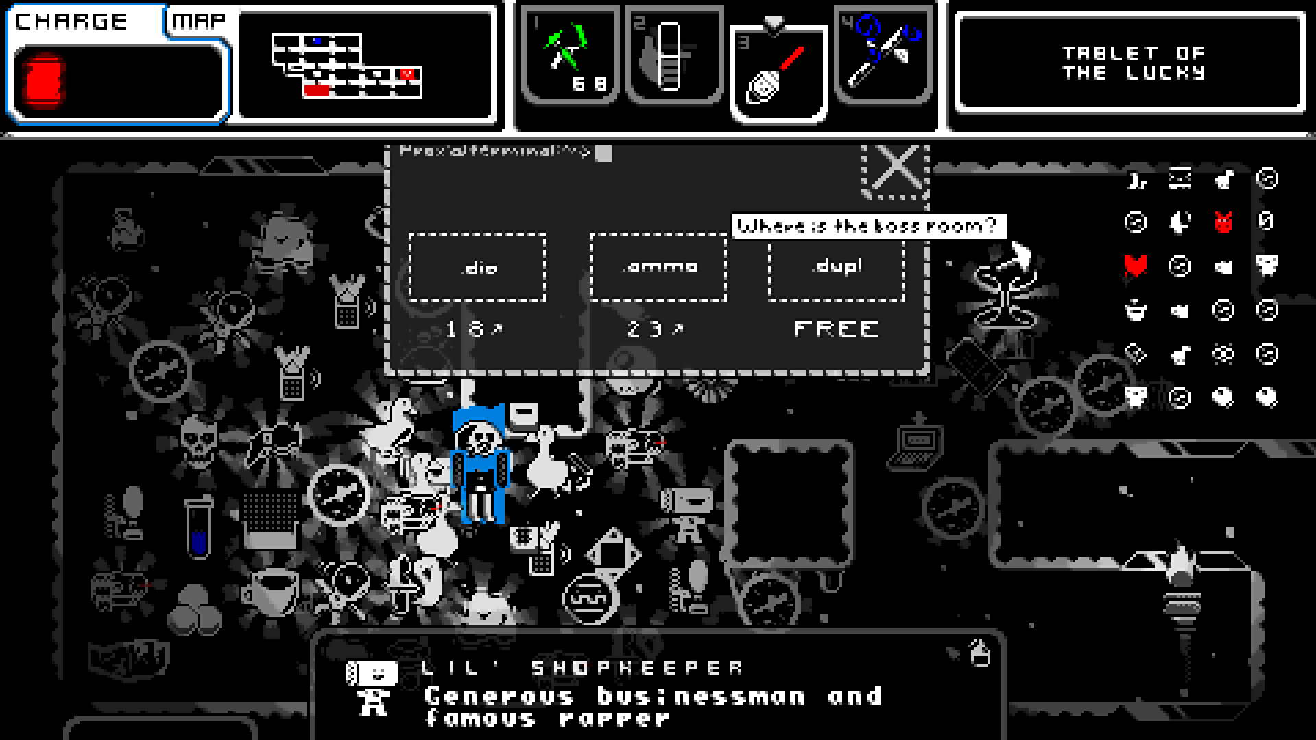 Just found a funny bug: unequipping tablet of the lucky somehow activates the room clear trigger, which can make items like the terminal and lil' shopkeeper activate. And there's no limit to it